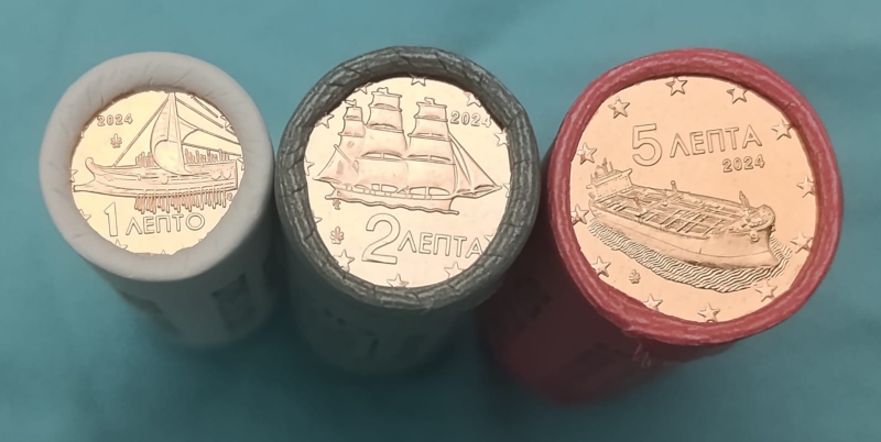 1,2,5 Cent Rollen Griechenland 2024 - 3 Sehende Rollen