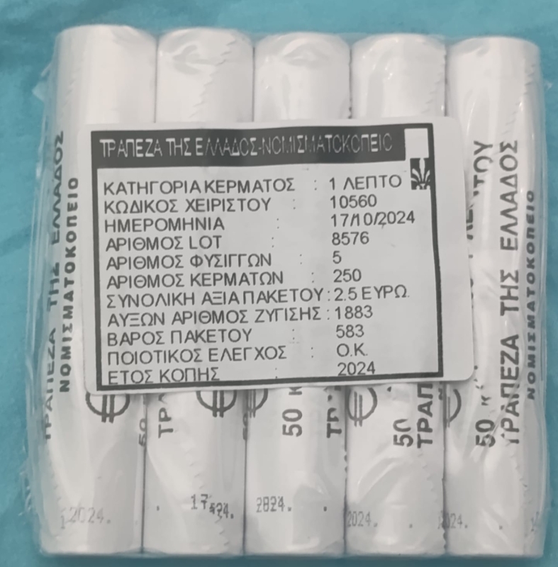 5 x 1 Cent Rollen Griechenland 2024 - 1 x Original Eingeschweisste 5er Lage