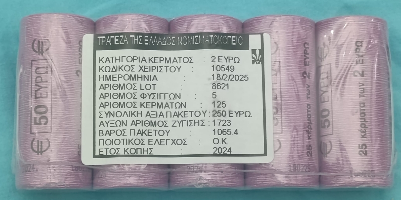 5 x 2 Euro Rolle Stier - Griechenland 2024 - Eingeschweisste 5er Lage