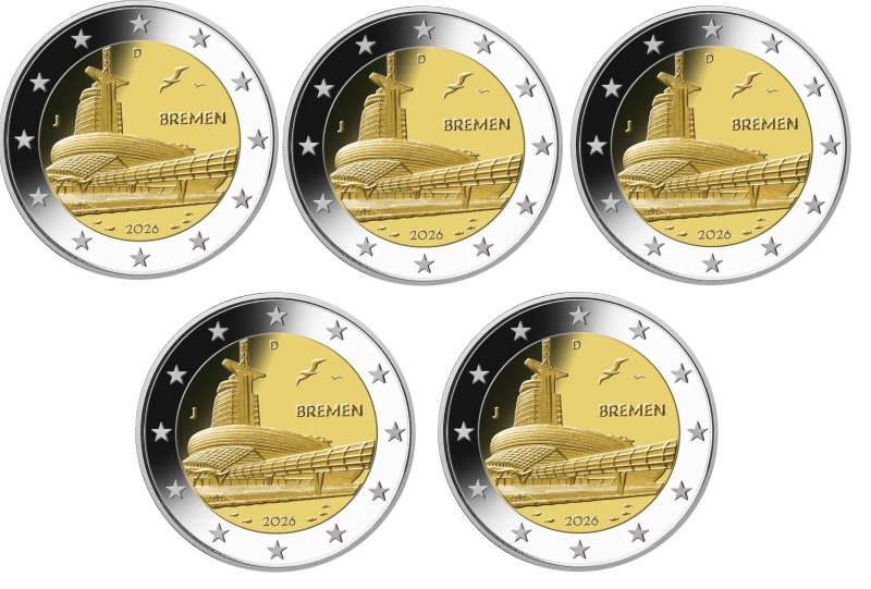 5 x 2 Euro BRD ADFGJ - Bremen - Serie Bundesländer II - Stempelglanz